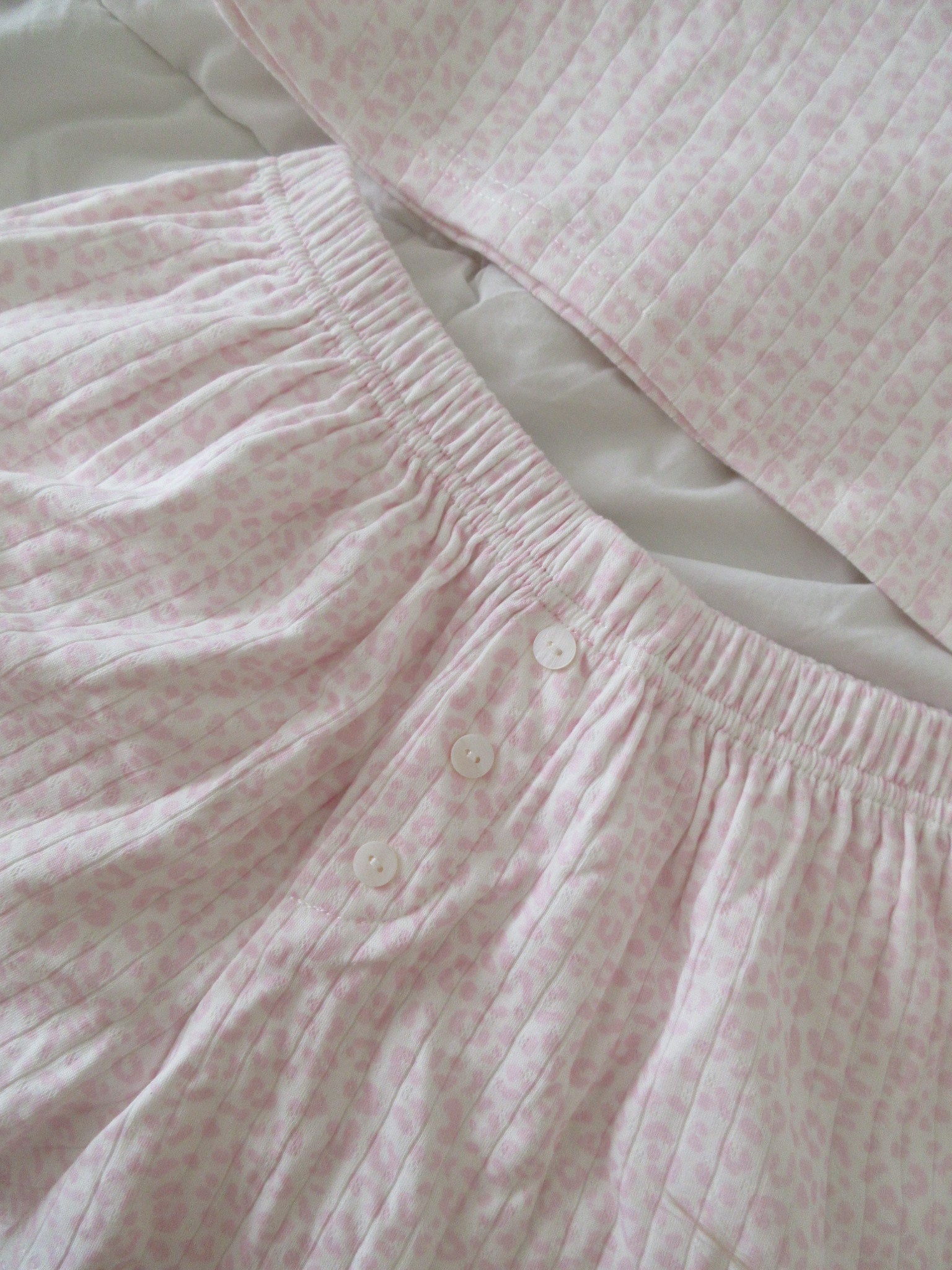 Soft cotton white shorts entirely covered in pink leopard print. Our shorts include an elastic waistband and three buttons detailing.